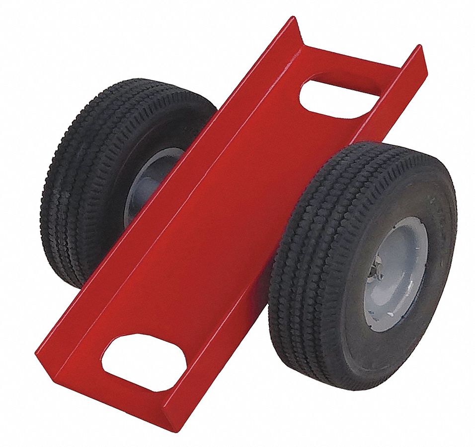 Cylinder dollies have a flat solid platform that holds large cylinders of liquid.